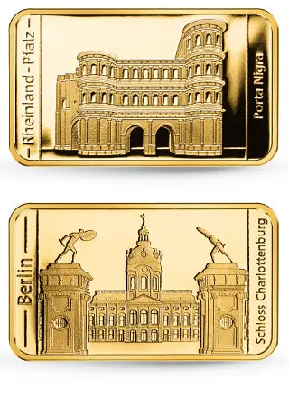 Die historische Bedeutung der in der Kollektion vertretenen Bauwerke wie Magdeburger Dom, die Porta Nigra in Rheinland Pfalz, der Dresdner Zwinger in Sachsen oder die Wartburg in Thüringen findet in den Goldbarren ihren Ausdruck.